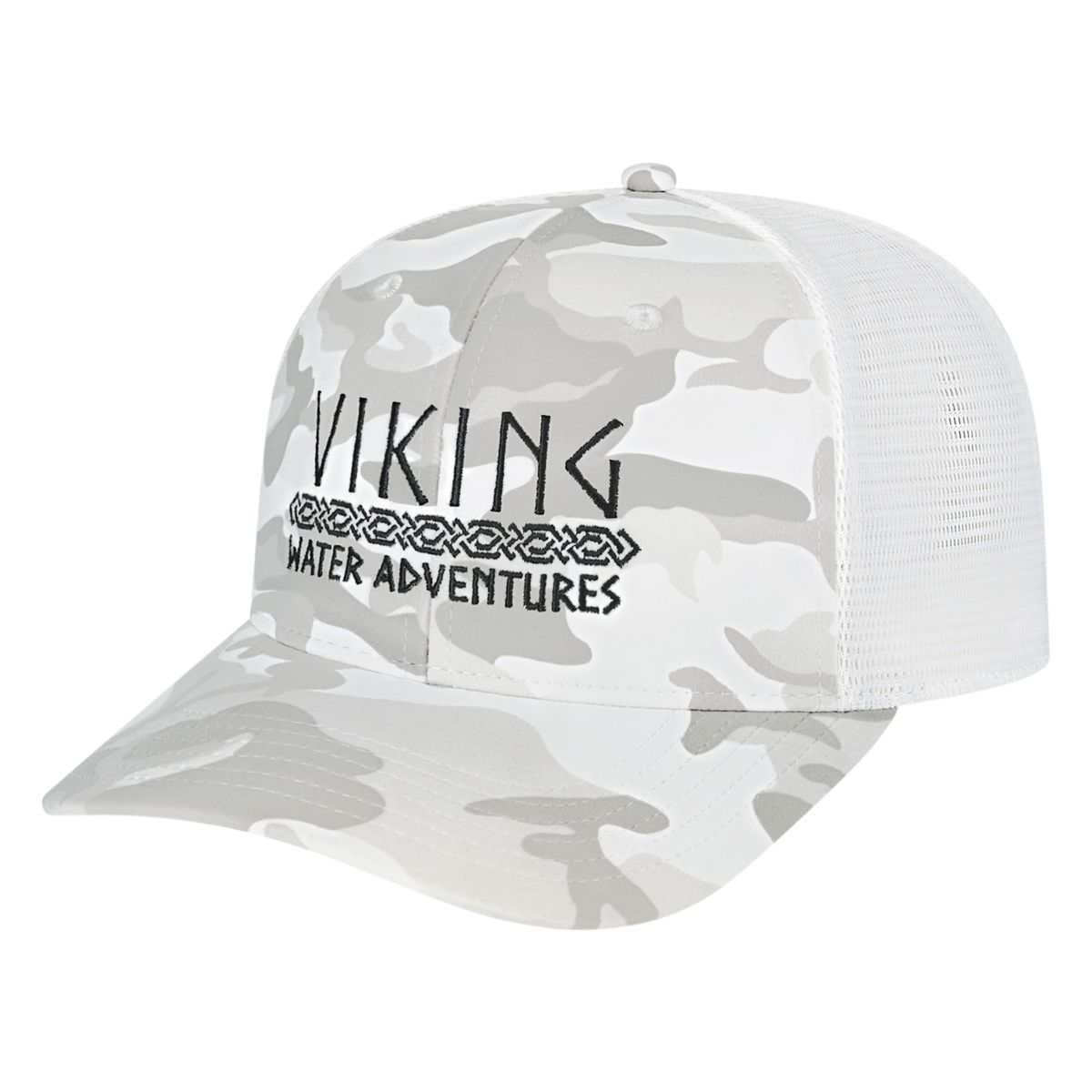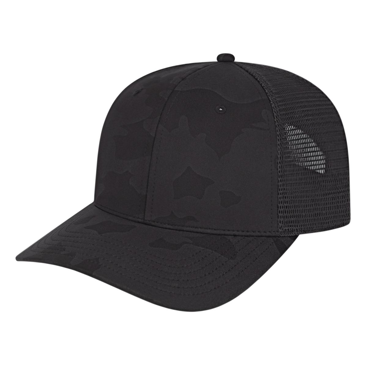 From peak to pavement, our i2024 combines a sleek camo design with the performance you need. Featuring UV guard and a quick-dry sweatband, it's your perfect companion for any outdoor pursuit. Medium profile six panel structured cap with modified flat bill visor. Poly/spandex blend fabric with double mesh featuring UV guard properties. Adjustable snapback closure.