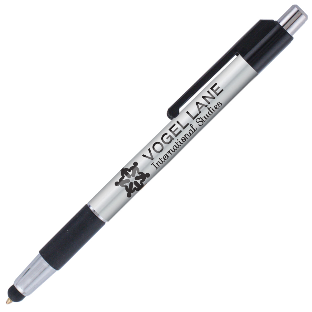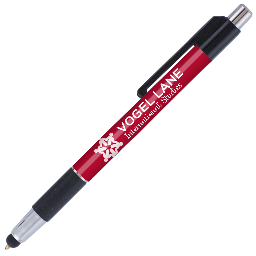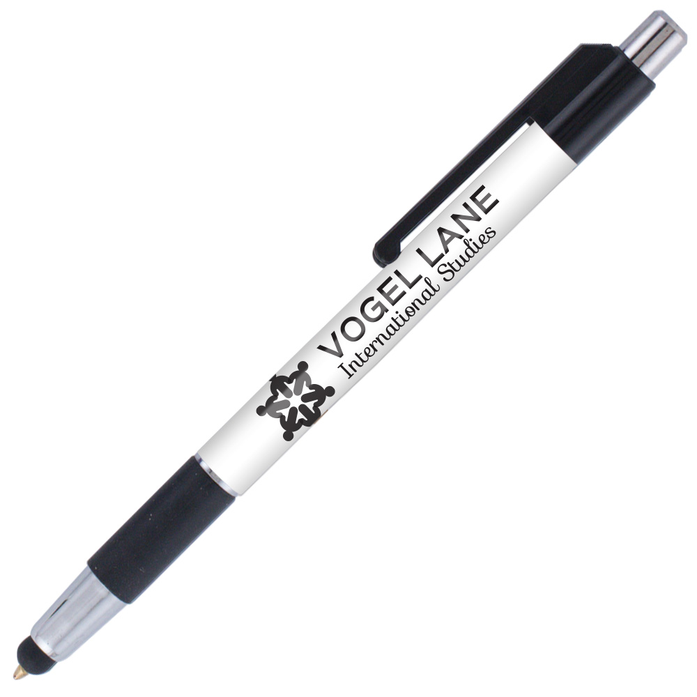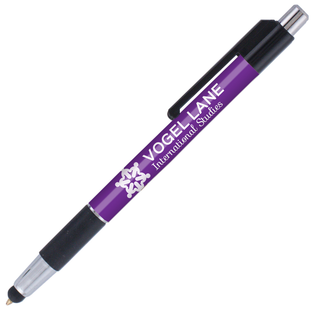 Weighted - A stylus version of our popular colorama trimmed with bright chrome accents and a rubber grip. This USA Made* plastic pen features our SimpliColor™ printing process giving you a huge imprint area with virtually unlimited colors. No set-up fees, no run charges and free ground freight. Our gelike, Eversmooth® ink gives you an extraordinary writing experience in black and blue ink choices. *(Product is USA Made of US and Import Parts)